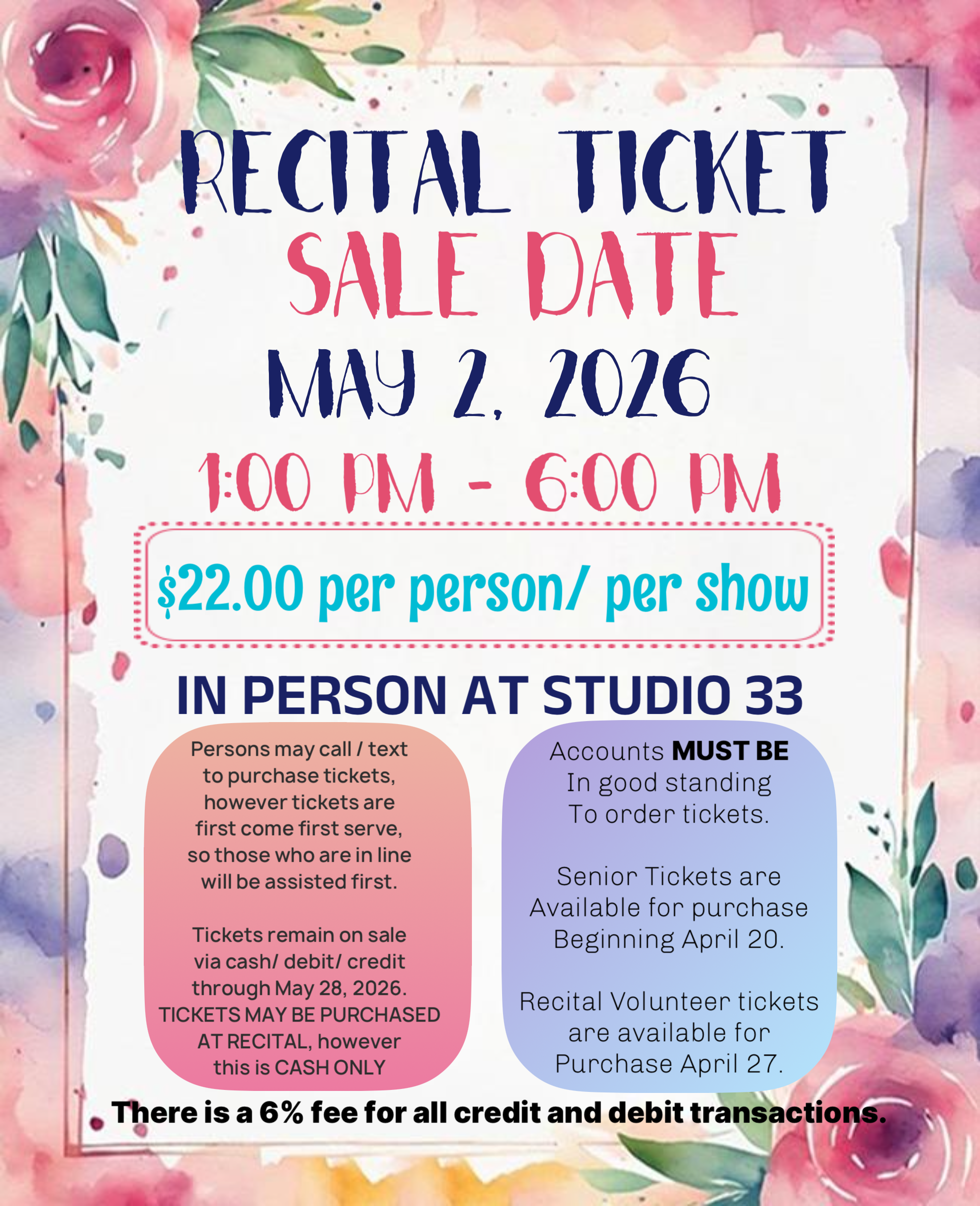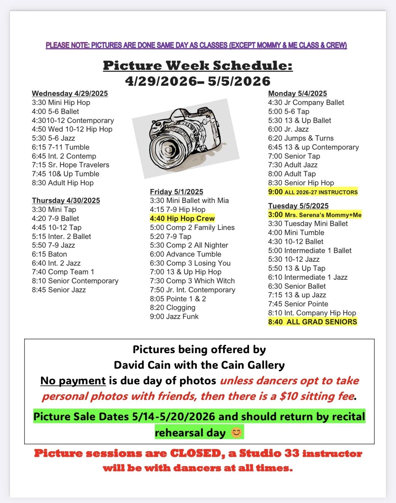 CLICK OUR REGISTRATION TAB FOR OUR NEW SCHEDULE, STUDIO INFORMATION, AND HOW TO REGISTER!